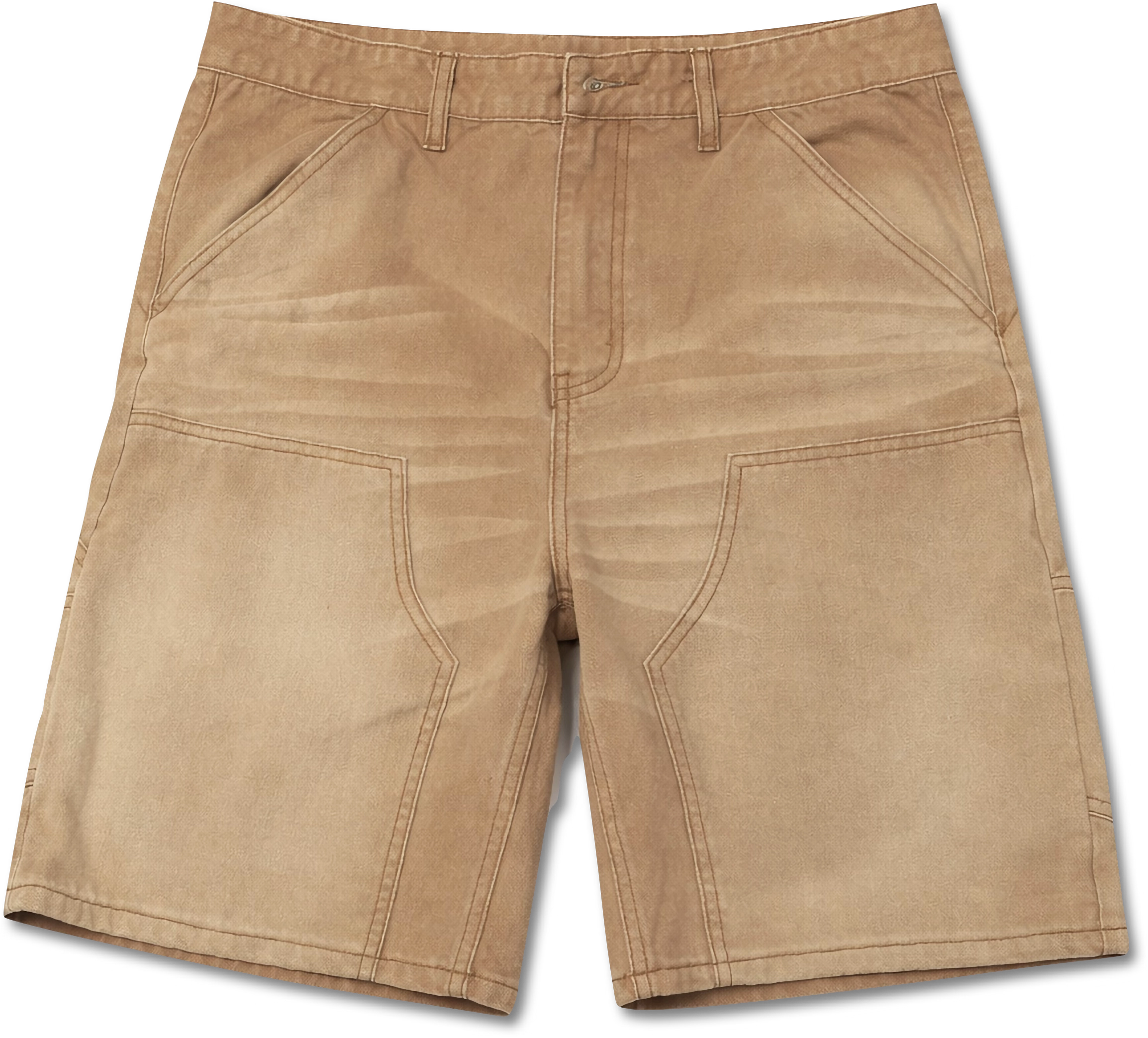 Canvas carpenter short in the exact tan of Southwestern building yards. Built to work, built to fade honestly.